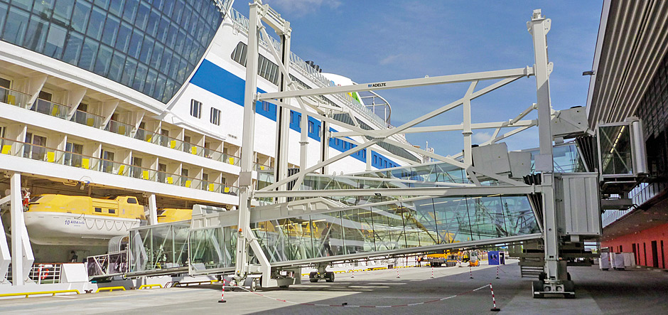 ADELTE Ports & Maritime has installed two seaport passenger boarding bridges (SPBBs) at the new Cruise Center Steinwerder terminal, in Hamburg, Germany.