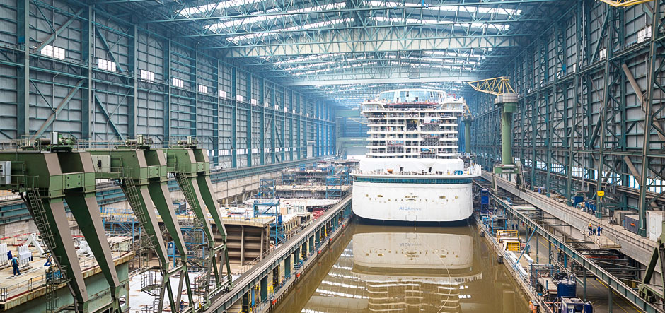 During the floating-out process, the shipyard’s team used several cable winches to enable AIDAnova to travel a distance of approximately 140 metres.