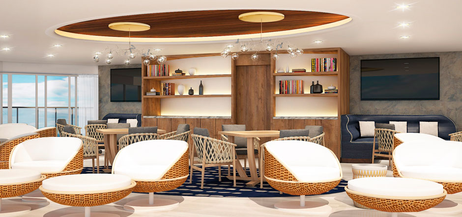 Public spaces have also been designed to create a relaxed and intimate atmosphere. The Vista open-air hideaway on the top deck, for example, has comfortable cocoon-style loungers and private cabanas to enable guests to unwind in comfort.