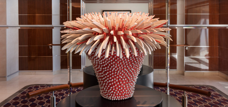 ArtLink was invited to curate the collection by Seabourn president Rick Meadows and the ship’s interior designer Adam D. Tihany, following the success of a similar project onboard sister ship Seabourn Encore in 2016. Both vessels feature a glass sculpture by Italian visual artist Luciano Vistosi and some pieces from the same artists, but each collection is largely unique and Seabourn Ovation’s is almost twice as big.