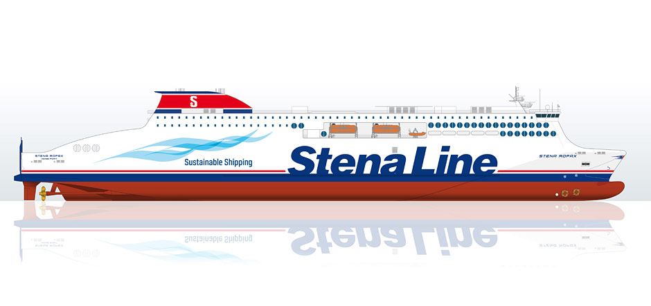 “During the course of the past 24 months our engineering staff has managed to develop a design that is not only 50% larger than today’s standard ropax vessels, but more importantly, incorporates the emission reduction and efficiency initiatives that have been developed throughout the Stena Group during the past years,” said Carl-Johan Hagman, managing director of Stena Line. “These ships will be the most fuel efficient ferries in the world and will set a new industry standard when it comes to operational performance, emissions and cost competitiveness, positioning Stena Line to support its customers in the next decades.”