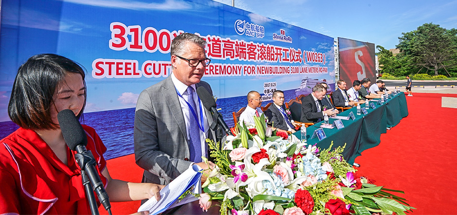 China’s AVIC Weihai Shipyard cut the steel for the first of Stena Line’s four new ro-pax ferries on 25 August.
