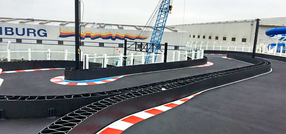 “We are very proud to have been involved in such a ground-breaking project and to have developed the first kart track onboard a ship,” said Peter Bertram, owner and chief executive of RiMO Germany Group. “Bolidt’s assistance and expertise in supplying marine decking materials was invaluable and I would like to thank them for their cooperation which ensured that we reached our goal in delivering this unique track in an efficient and uncomplicated way.”