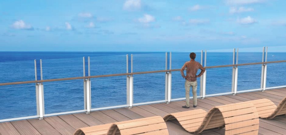 Brombach + Gess has developed a new liftable and lowerable balustrade solution for passenger ships, BALUSTRADEmove. The system can be used to upgrade existing glass balustrades or as a new installation, offering protection from the wind on outdoor restaurant terraces or sundeck areas onboard.