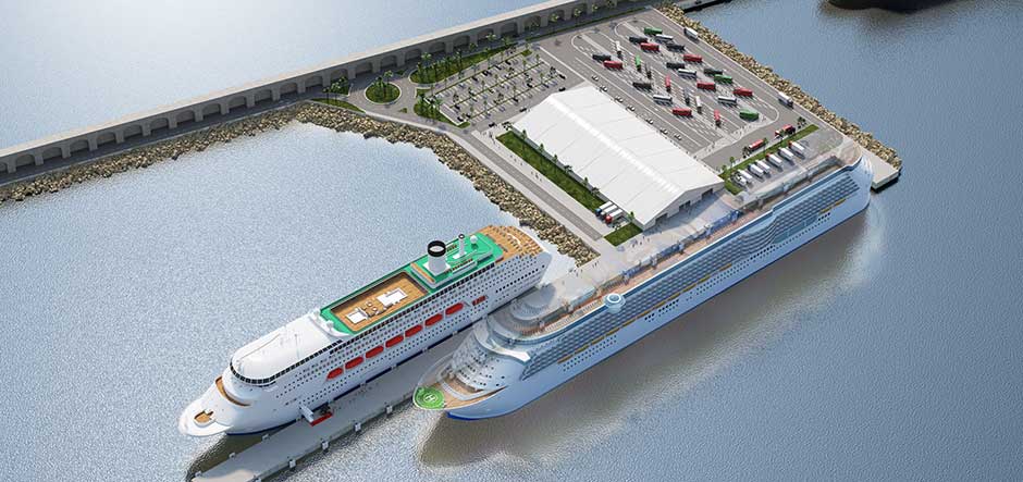 The total mooring line will be 700 metres, as on 240 metres of the wharf it will be possible to berth on both sides. This doubles the number of cruise ships that will be able to dock at once and offers more than enough space for even the largest cruise vessels.