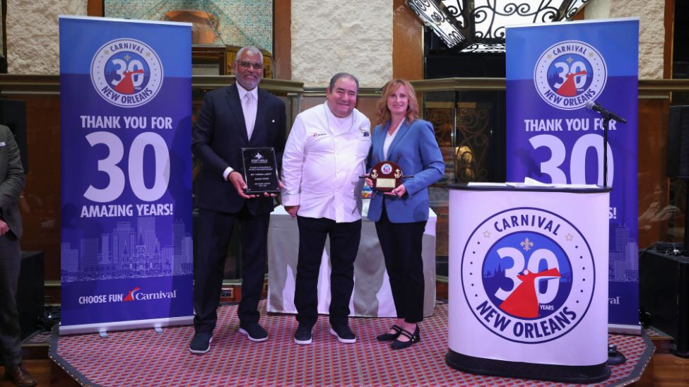 The cruise line’s chief culinary officer Emeril Lagasse, famous for his New Orleans cuisine, marked the milestone onboard Carnival Liberty as the ship sailed into its year-round homeport for the first time. He was joined by local community leaders, as well as Chris Chiames, Carnival’s chief communications officer, and Arnold Donald, a New Orleans native and former Carnival Corporation CEO.