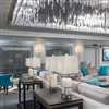 Meanwhile, the Yacht Club features a centrepiece of antique brass rods fitted to an antique brass frame, which is interspersed with crystal rods of varying heights to create a waterfall effect. The main lighting feature in the reception area comprises antique brass rods and suspended teardrop lights to emulate water.