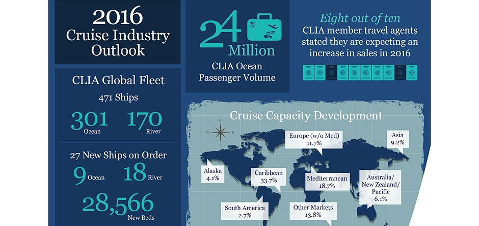 1. Rise of the river cruise – river cruises are growing in popularity and CLIA’s cruise line members are expected to add 18 new vessels to the current 170-strong global fleet in 2016, an increase of more than 10%