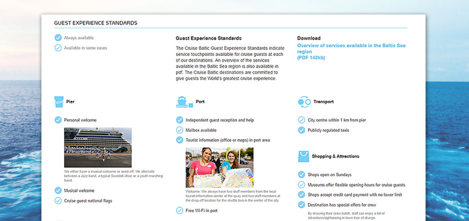 Cruise Baltic has launched an online Guest Experience Standards tool to allow ports and destination authorities to market their services and facilities to cruise lines and visitors.