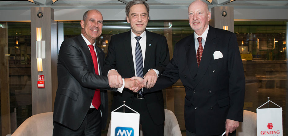Shipbuilder MV Werften handed over Crystal Debussy to the line’s president and CEO Tom Wolber during a traditional flag exchange ceremony at its yard in Wismar on 8 March. The ceremony was also attended by Tan Sri Lim Kok Thay, chairman and CEO of Crystal’s parent company, Genting Hong Kong (GHK); Colin Au, group president of GHK; and Jarmo Laasko, CEO of MV Werften.