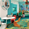 True design flexibility lies in Forbo Flooring Systems’ digital printing technology. “Digital printing allows us to easily produce custom new floor coverings with feature pieces, logos and bespoke design that fulfil our clients’ specific project requirements,” explains Holmes. “For example, when I was asked to develop a fun and eye-catching floor covering inspired by marine wildlife and mythical creatures for a children’s play area, I used Flotex FR to develop a feature design with elements that could be repeated in borders and other areas of the room. The multi-pattern, multicoloured, friendly octopus met the brief nicely.