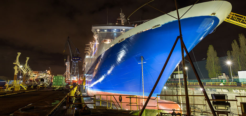 Magellan was the first ship to dock at the yard, undergoing a four-week schedule of works. Repairs were made to the main and auxiliary engines, while the bow and stern thrusters were overhauled and the liferafts serviced. Further steel repairs to a series of tanks were identified and carried out during the process.