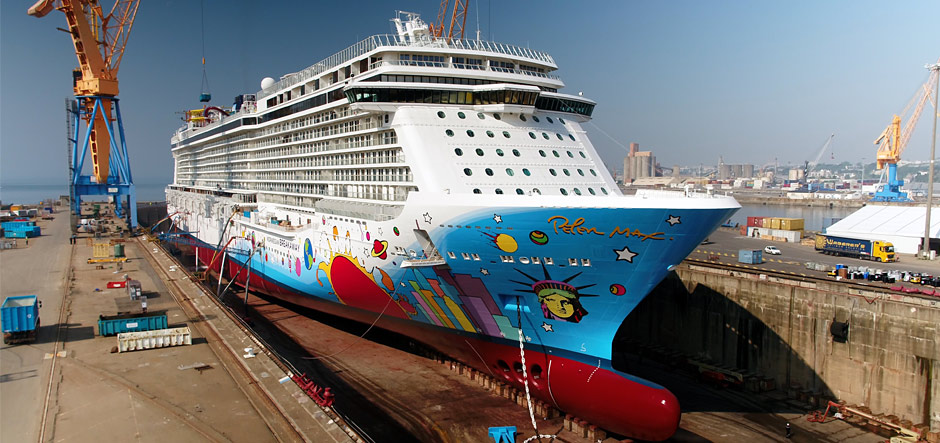 Norwegian Breakaway docked in DSBr’s 420-metre Number 3 dry dock as the shipyard’s team worked with engineers from ABB Marine to repair the shaft bearings and replace the slewing seals on her to ABB azipod propulsion units. At the same time, DSBr technicians also worked with Brunvoll to perform maintenance work on the ship’s three bow thrusters and the two Fincantieri stabilisers. The hull was also repainted.