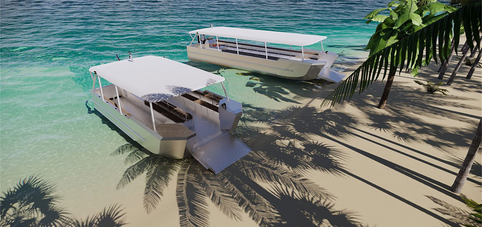 Damen will construct three ships of the Damen Ferry 804 design and two of the 1204 design. At eight and 12 metres long respectively, the ferries can carry 30 and 70 people on the deck on benches. The propulsion systems are single waterjets that give an operational speed of around five knots.