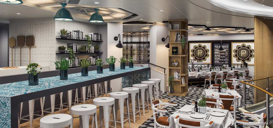 Pacific Explorer will have a poolside Lobster & Burger bar; the Waterfront restaurant; Italian eatery Angelo’s; Asian dining venue Dragon Lady; new supper club venue The Black Circus, which offers food and cabaret-style entertainment; and P&O’s international food market place, The Pantry. The latter will be extended to include a ninth outlet, Nic and Toni's, serving Mediterranean cuisine.