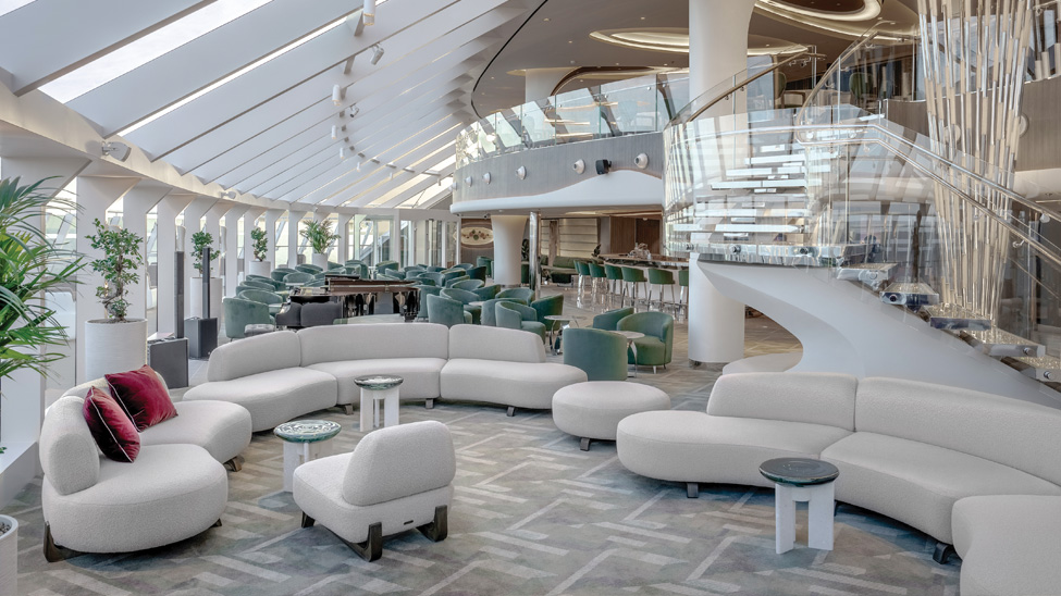 “The changes to the interior spaces are being made in response to the different architecture of the ship as well as feedback we’ve received,” says De Jorio. “For example, the changes we’ve made to the lobby are intended to make the space easier to walk through, while also adding a few more corners such as a library. These updates should make the ship quite a different experience for guests while maintaining the same level of quality.”