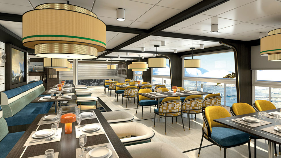 “The ship will have interiors, facilities and amenities designed to enhance both the expedition experience and passenger comfort,” says Tomas Tillberg, managing partner at Tomas Tillberg Design. “To ensure passenger comfort and convenience, the ship will have relaxing cabins and suites, beautiful dining venues, observation decks, a heated outdoor pool, a poolside bar, lounges, a library and a wellness centre with a spa, gym and sauna. The two dining venues will also be a highlight, with the outdoor venue enabling guests to enjoy meals while immersed in the surrounding scenery.”