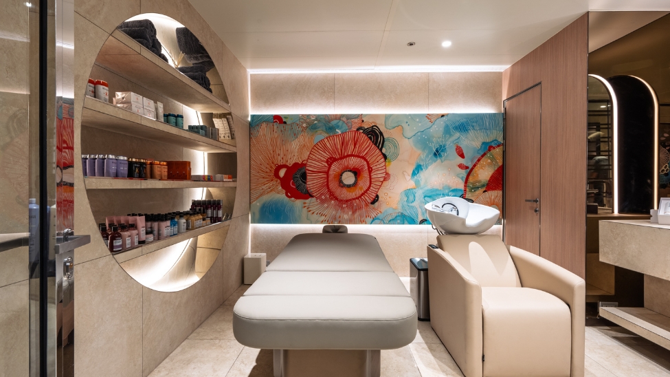 Wellness facilities onboard include a redesigned Wellness Deck, featuring salt therapy lounges, a cold plunge pool and a spa offering a range of treatments. Additional spaces include fitness areas, a marina platform and informal refreshment areas.