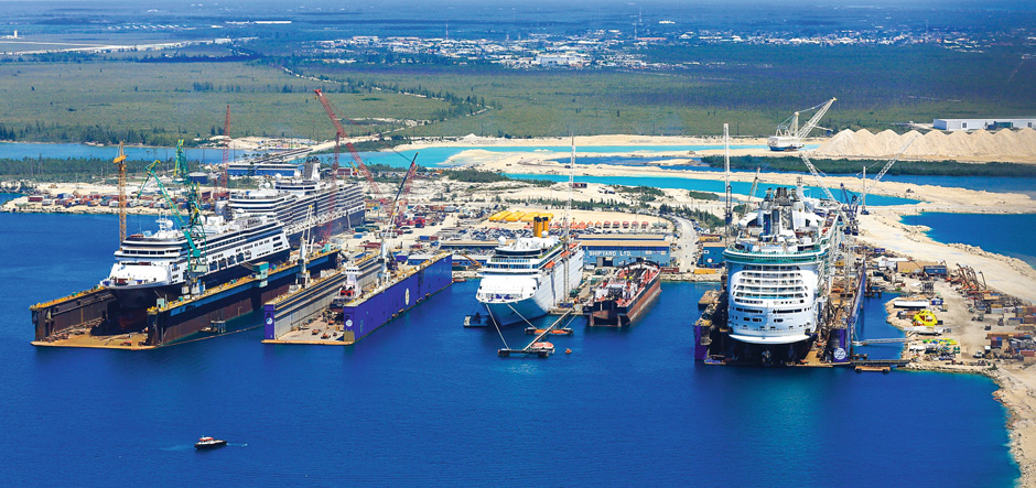 Located less than 100 miles from cruise line homeports in Miami and Fort Lauderdale, Florida, Grand Bahama Shipyard (GBS) has grown alongside the cruise ship industry. In 2007, it handled 18 cruise ships, 56 commercial vessels and 31 smaller wet dock projects. Growth has continued with the yard having serviced 20 cruise ships and 49 commercial ships in 2016, and a further 23 cruise ships last year.