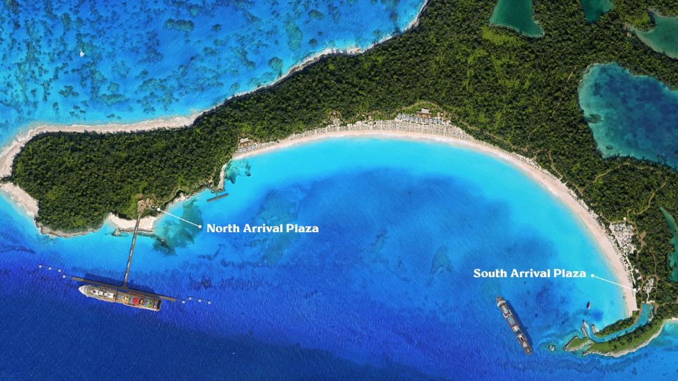 Guests will arrive at welcome plazas on the island’s south and north sides, spanning over one mile of white-sand beach. The existing development will receive a refurbishment inspired by the Bahamas, including a new beach club, an updated lunch venue and renovated facilities. The newly developed north side, meanwhile, will feature two lunch venues and island-themed bars. A new tram service will be introduced to make travel around the island more convenient, while other additions will include expanded lounging areas, additional cabanas and a new shore excursion pier. The architecture of the new developments are intended to complement the look of the island.