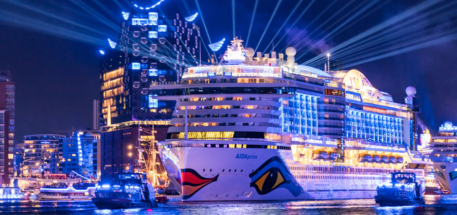 Throughout the event, Hamburg’s waterfront will be transformed into themed ‘islands’ that will showcase the benefits of cruising via maritime markets, cultural highlights, live music and dance, food tastings, recreation and sports, and more. More than 100 objects – including buildings, terminals, cranes, port vehicles and ships – in the area between the Elbbrücken bridges and the beaches of Oevelgönne will be illuminated as part of artist Michael Batz’s Blue Hamburg light installation.