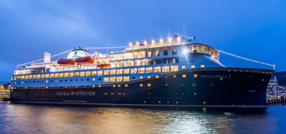 Havila Capella started her first sailing on the coastal route between Bergen and Kirkenes in Norway on 12 December 2021.