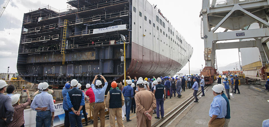 Shipbuilder Fincantieri successfully launched the forward lower section of Holland America Line’s new ship, Ryndam, at its yard in Palermo, Italy on 3 October.