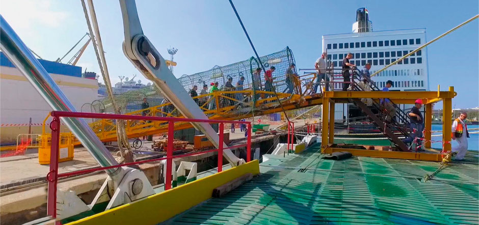 This March and April, we will be chartering two ferries for a well-known cruise line that will be upgrading a vessel with the help of around 4,200 vendors and project team members at the Cadiz yard over a 40-day dry dock. This time, we’ll provide accommodation for around 2,200 people and meals for all personnel. We’ll use our proprietary wristband system to ensure the security of the individuals coming on and off the ferry.