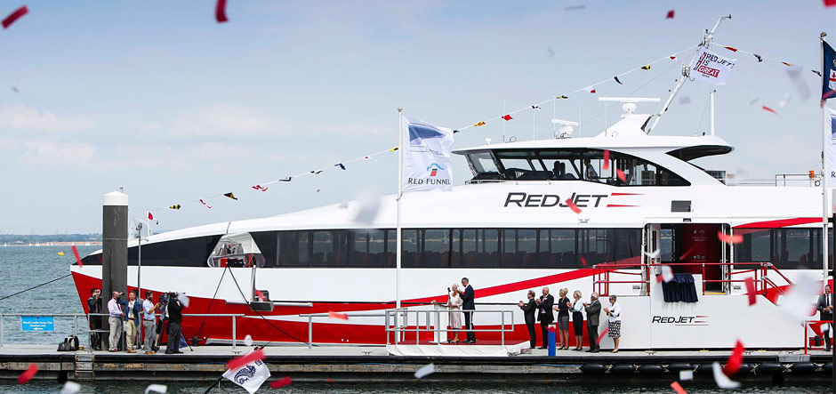 “We would very much like to thank HRH The Duchess of Cornwall for naming Red Jet 7,” said Kevin George, Red Funnel chairman. “It is only fitting that the naming ceremony took place in Cowes where the boat will be a very frequent visitor and in sight of where she was built in the ‘Union Jack’ building. Red Jet 7 represents another significant investment by Red Funnel in marine manufacturing on the Island and the team at Wight Shipyard can be extremely proud of not only building a ship of such high quality but also for delivering her on time and on budget.”