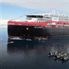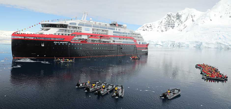 Hurtigruten has named the world’s first hybrid cruise ship, Roald Amundsen, during a christening ceremony in Chiriguano Bay, Antarctica.