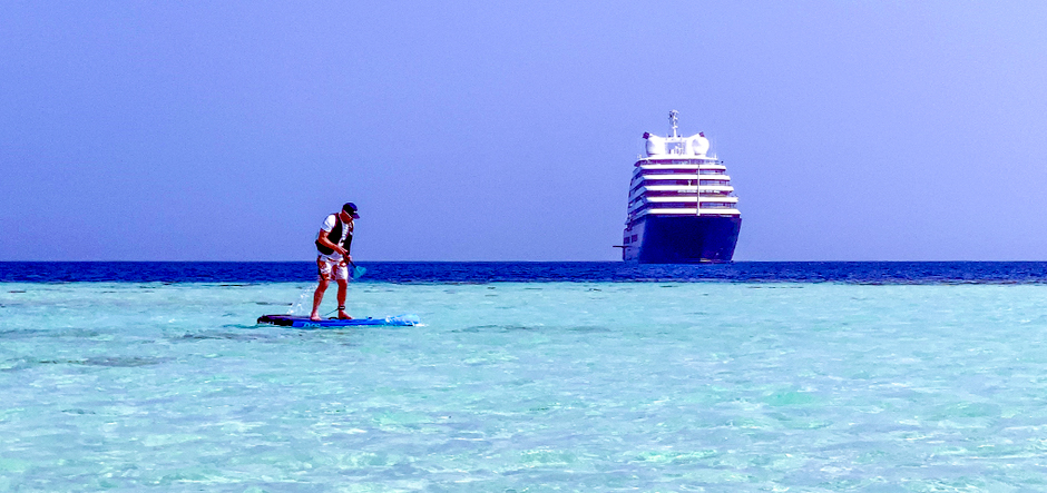 Jon Ingleton speaks with Scenic Cruises' CEO during Scenic Eclipse's first sailing in Saudi Arabia
