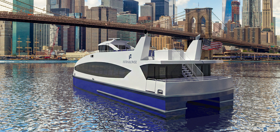 Developed in collaboration with Hornblower, the new 150-passenger vessels will have spacious interiors, disabled access, wide aisles, a concession stand and wifi. The foredeck will also house bicycle racks and space for pushchairs.