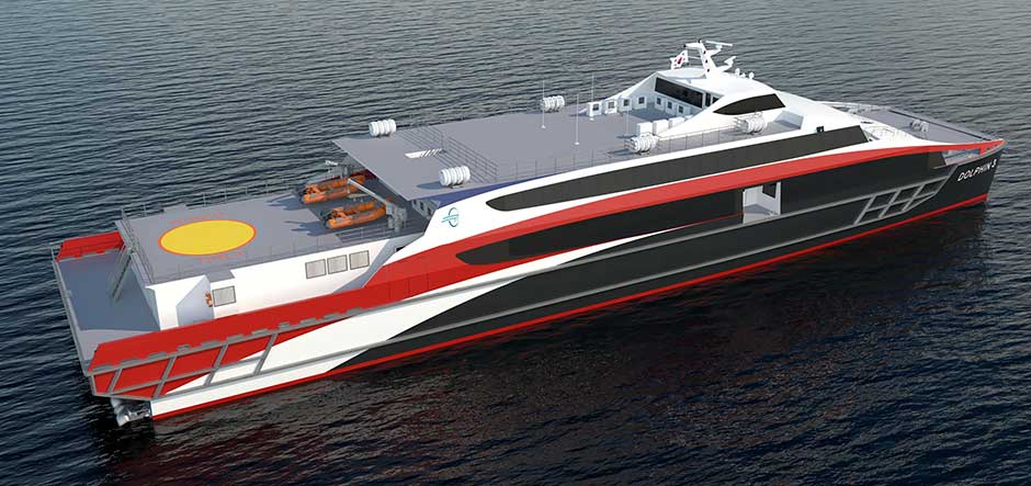 Dolphin 3 will also have a wheelhouse with 360-degree visibility on her third deck, as well as oversized boarding points at her aft and mid-ship to expedite passenger boarding processes. The ferry will be powered by quad 3,700-kilowatt main engines driving Rolls-Royce Kamewa S80-4 waterjets, allowing her to operate at a service speed of 39.5 knots. This will reduce journey times by an hour, compared to the vessel currently operating on the route.