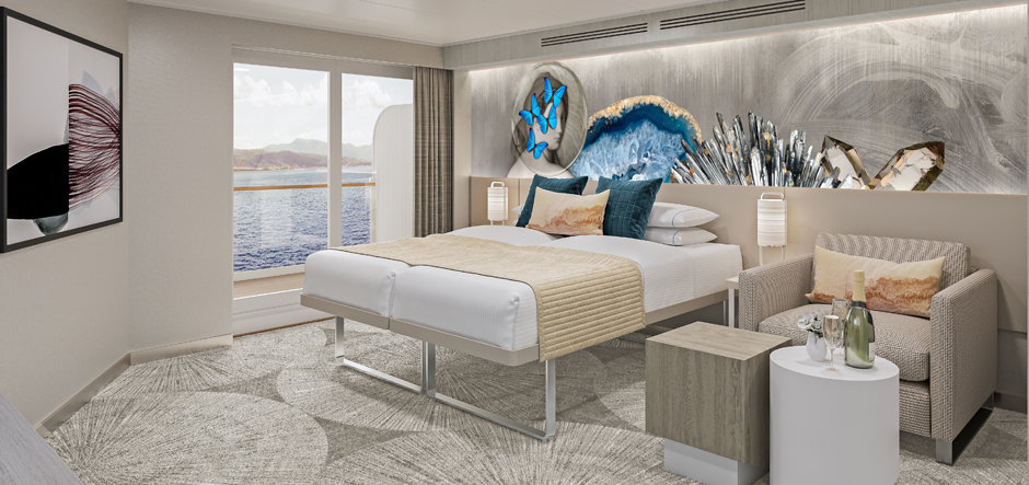 Considering all the small details that significantly impact the overall ambience and aesthetic of a stateroom is a hallmark of Studio DADO’s design process, says Ruiz. “We incorporate all the digital technologies and amenities guests enjoy at home so the experience is seamless, convenient and enjoyable.”