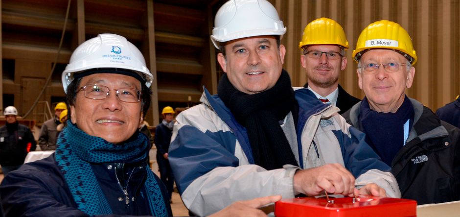 In keeping with tradition, Dream Cruises president Thatcher Brown laid luck coins under the keel block to bring good fortune to the ship and those who will sail on her.