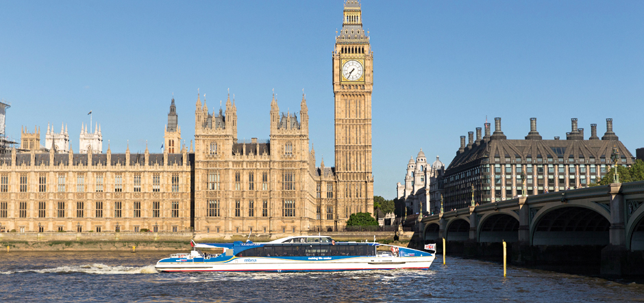 MBNA Thames Clippers’ high-speed catamarans operate on the River Thames in London and range from 25-metre-long vessels up to 38-metre-long boats with 220 seats. Each boat is equipped with a small café-bar with a small selection of hot, cold and alcoholic drinks, as well as snacks.