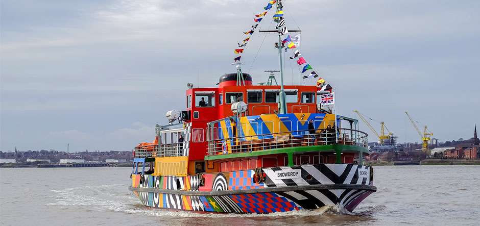 “The whole concept of ‘Dazzle Ferry’ has generated buzz and excitement even before launch, with people keenly following Snowdrop’s transformation and then sharing what they’ve seen,” said David Brown, chief executive of Merseytravel. “This project should not only capture the imagination of those visiting from afar, but will be a means for those who live locally to rediscover what’s on their doorstep. We’re offering up our ferry as a canvas and exhibition space through which the history of dazzle ships and the important role the Mersey Ferries played during the First World War can be explained.”
