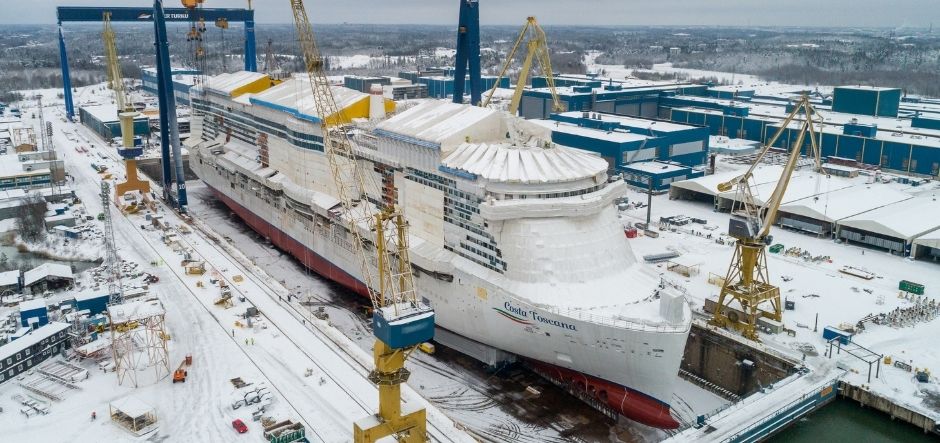 The construction milestone was marked by a traditional float-out ceremony to commemorate the first time the 185,000gt Costa Toscana touched water.
