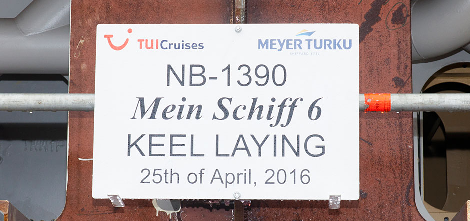 Meyer Turku laid the keel for TUI Cruises’ Mein Schiff 6 at its Turku shipyard in Finland on 24 April.