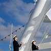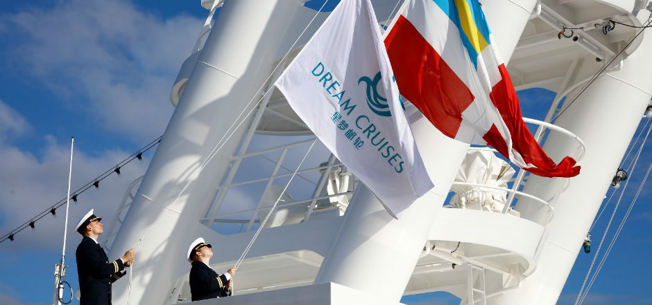 German shipbuilder Meyer Werft signified the official handover to Genting and Dream Cruises by replacing its own flag and the German flag with flags for Dream Cruises and the Bahamas.