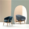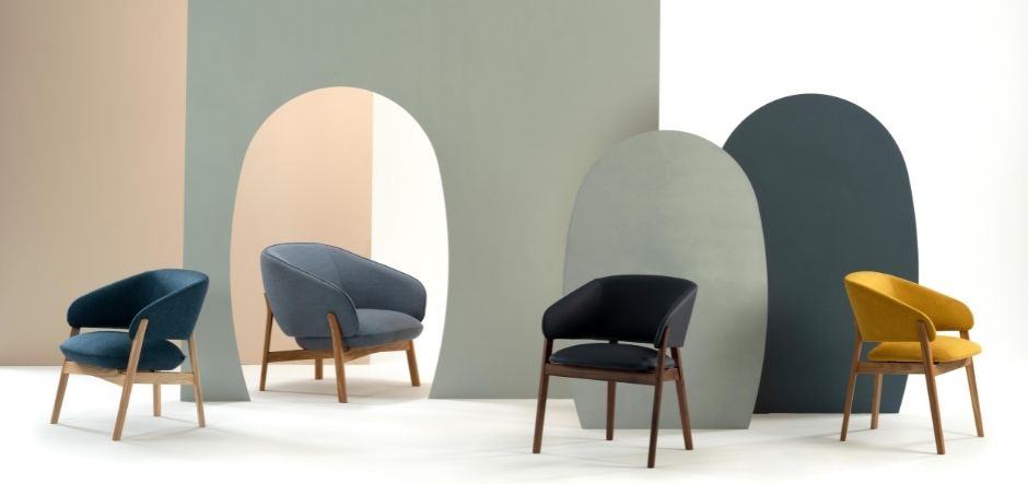 The collection is named after Lake Lugano in Switzerland, and includes a signature lounge chair, a small lounge chair and a dining chair. The seats combine a crafted timber frame with two upholstered elements, the seat pad and back and arm rests. Each of these elements can be individually replaced or updated, which is intended to prevent the need for a complete replacement and reduce environmental impact.