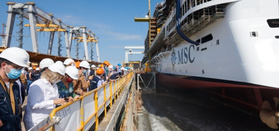 “The float out has always been one of the most satisfying moments for those involved in the construction of a ship,” said Giuseppe Bono, CEO of Fincantieri. “It is also the occasion to further strengthen everyone’s commitment, because when the ship touches the sea a lot of work has already been done, but much more still lies ahead. This applies even more to MSC Seashore, a record-breaking ship that focuses on innovation, technology and design.”