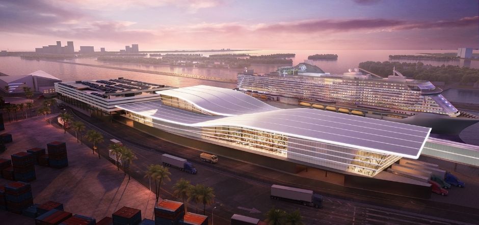 The new terminal represents an investment of €350 million ($416 million) and will be made up of a multi-level central body which will be able to serve up to three cruise ships at the same time and handle up to 36,000 passenger movements per day. Designed by the global architecture firm Arquitectonica, the terminal is due to be completed by December 2023.