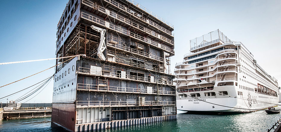 MSC Sinfonia, which is one of four MSC Lirica-class vessels to be extended as part of the programme, arrived at the yard on 12 January and will undergo similar enhancements to her sister ship MSC Armonia, which was extended last September and relaunched in November 2014.