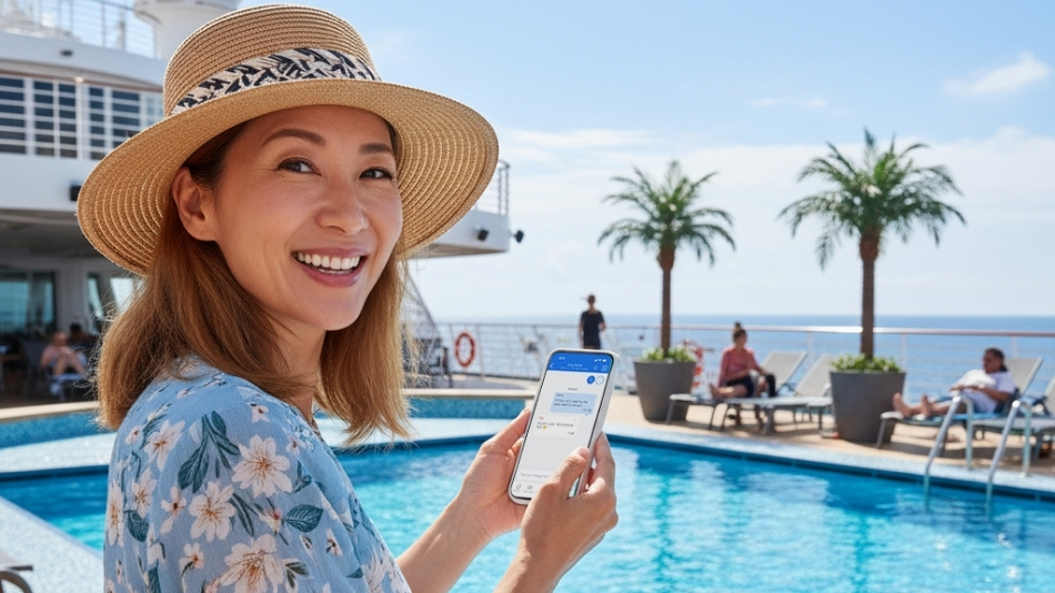 The system enables one-to-one and group chats through the MXP mobile app or web portal, allowing passengers to coordinate plans, share information, and remain in contact throughout the cruise. Guests receive real-time notifications of new messages and can create private chat groups for families or travel companions.