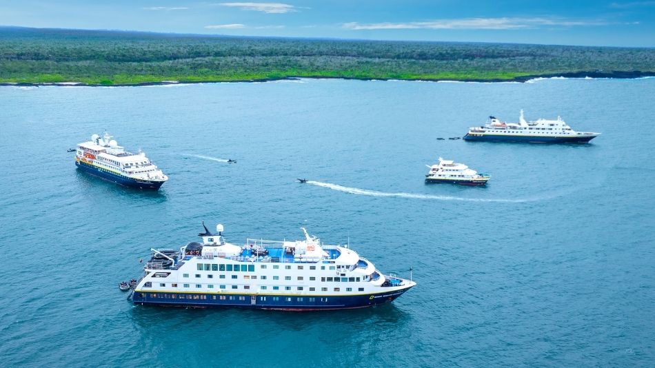 Four National Geographic-Lindblad Expeditions ships have met to celebrate the christening of the cruise line’s newest two vessels in its first ever fleet gathering, which took place at Academy Bay in the Galapagos Islands.