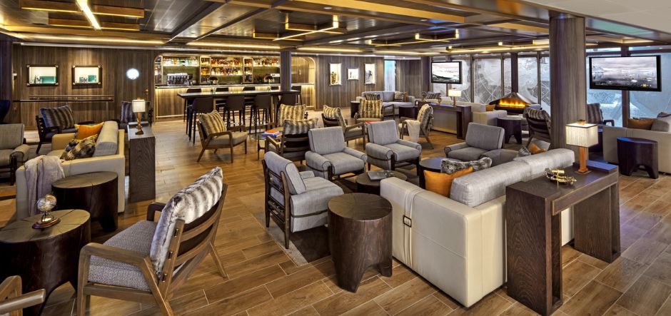 The ship is designed to PC6 Polar Class standards and offers 132 oceanfront suites. Venues include the Expedition Lounge on deck four, the adjacent Discovery Center lecture area, the Bow Lounge on the bottom deck and the Constellation Lounge on the top deck. The ship is equipped with kayaks and enough Zodiacs to transport every guest onboard, as well as two custom-built submarines with capacity for six passengers.