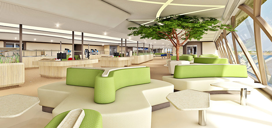 Oliver Design was commissioned to fit out the vessel according to an interior design created by Dutch yacht design firm Vripack. Over an 18-month period, 100 staff at Oliver Design created more than 1,000 construction and working drawings for the 4,000sqm main hall on the passenger deck, the weather decks, the two bridges and offices and the buffet, crèche, services, dining and crew areas.