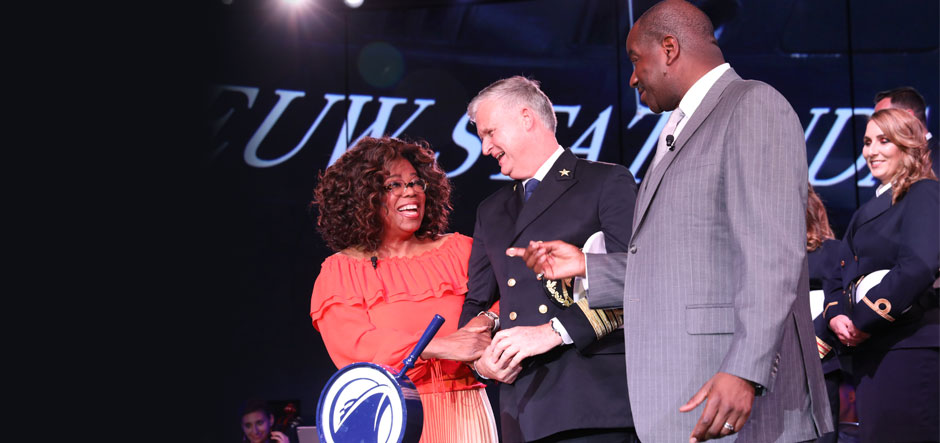 Winfrey was joined on stage by Orlando Ashford, president of Holland America Line; Stein Kruse, president of Holland America Group and CEO of Carnival UK; and Arnold Donald, president and CEO of Carnival Corporation.