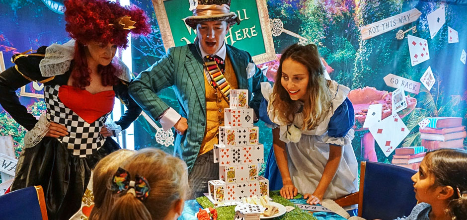Guests wear headsets and use a smartphone to navigate a series of puzzles and adventures before arriving at a real door (which mirrors a virtual door) where they join a real-life tea party hosted by Peel Entertainment's professional actors playing the characters of Alice, the Mad Hatter, the Queen of Hearts and the White Rabbit. Here, they complete a final test before enjoying aternoon tea and a game of flamingo croquet.